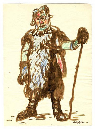 Albert Nyfeler (1883-1969), Kippel: Darstellung einer Tschäggätta-Figur, Aquarell und Farbstift, 1930.